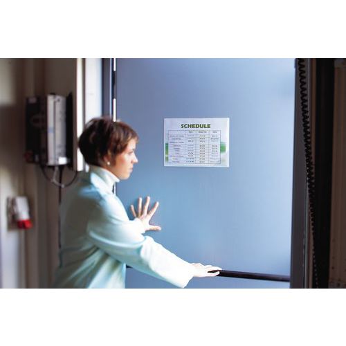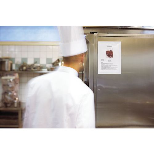 As bolsas de exposição magnéticas Kang Easy Load fixam-se em todas as superfícies metálicas. Verso totalmente magnético com uma resistência excecional. Abertura dos 2 lados para uma introdução fácil dos documentos. Fecho no canto Easy Load: prático e eficaz para introduzir e retirar os documentos. Instalação simples e rápida, sem parafusos nem pregos, permite a remoção sem deixar vestígios. Utilização vertical e horizontal. Solução de exposição para utilização em máquinas, portas, quadros metálicos, frigoríficos, etc. Bolsa em PVC com verso magnético. Pode conter até 10 folhas de papel de 80 g. Fundo totalmente verde.