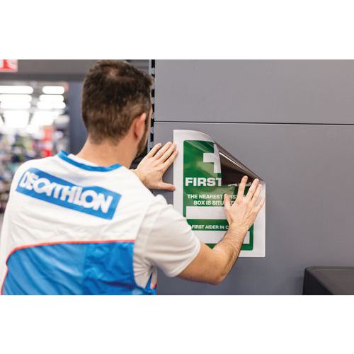 As bolsas de exposição magnéticas Kang Easy Load fixam-se em todas as superfícies metálicas. Verso totalmente magnético com uma resistência excecional. Abertura dos 2 lados para uma introdução fácil dos documentos. Fecho no canto Easy Load: prático e eficaz para introduzir e retirar os documentos. Instalação simples e rápida, sem parafusos nem pregos, permite a remoção sem deixar vestígios. Utilização vertical e horizontal. Solução de exposição para utilização em máquinas, portas, quadros metálicos, frigoríficos, etc. Bolsa em PVC com verso magnético. Pode conter até 10 folhas de papel de 80 g. Fundo totalmente verde.