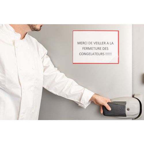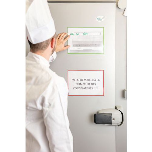 As bolsas de exposição magnéticas Kang Easy Load fixam-se em todas as superfícies metálicas. Verso totalmente magnético com uma resistência excecional. Abertura dos 2 lados para uma introdução fácil dos documentos. Fecho no canto Easy Load: prático e eficaz para introduzir e retirar os documentos. Instalação simples e rápida, sem parafusos nem pregos, permite a remoção sem deixar vestígios. Utilização vertical e horizontal. Solução de exposição para utilização em máquinas, portas, quadros metálicos, frigoríficos, etc. Bolsa em PVC com verso magnético. Pode conter até 10 folhas de papel de 80 g. Fundo totalmente verde. Fabricado na UE