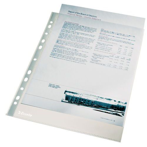 | Nome do artigo | Bolsa perfurada A4 lisa em polipropileno, 105 µ, x100 – Esselte, Cores: Transparente |