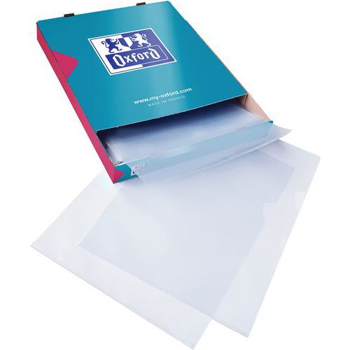 | Nome do artigo | Bolsa perfurada lisa transparente A4 – Oxford, N.º de bolsas: 100, Cores: Transparente |