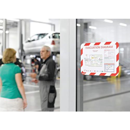 Quadro de exposição de segurança com bolsa – verso autocolante reposicionável A4