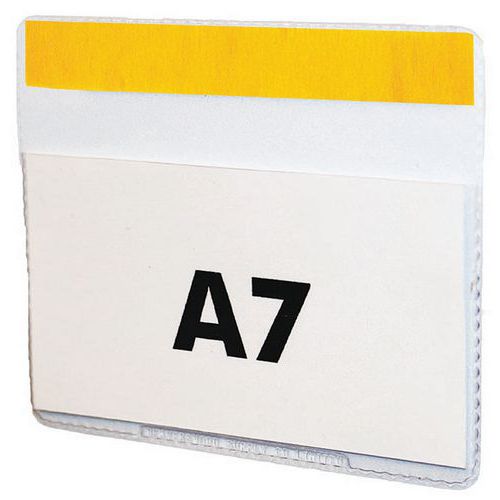 | Nome do artigo | Bolsa porta-documentos transparente A7 – autocolante, Lean Management: sim, Altura: 60 mm, Largura: 110 mm |