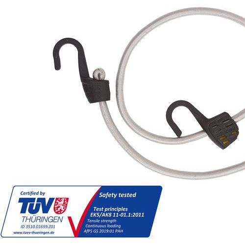 | Nome do artigo | Cabo elástico ajustável Steelcor™, Ø: 9.5 mm, Comp.: 1500 mm, Cores: Cinzento, Elevação Proibida: sim |