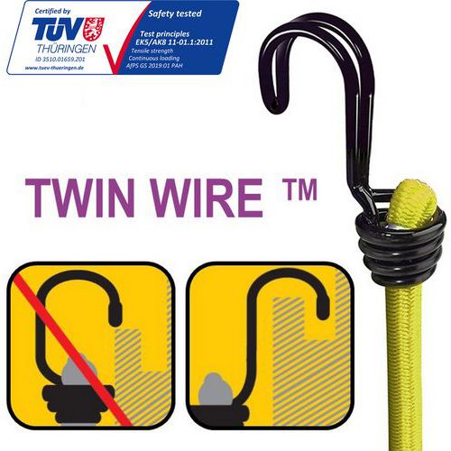 - O gancho de arame duplo oferece maior resistência do que os cabos elásticos tradicionais.