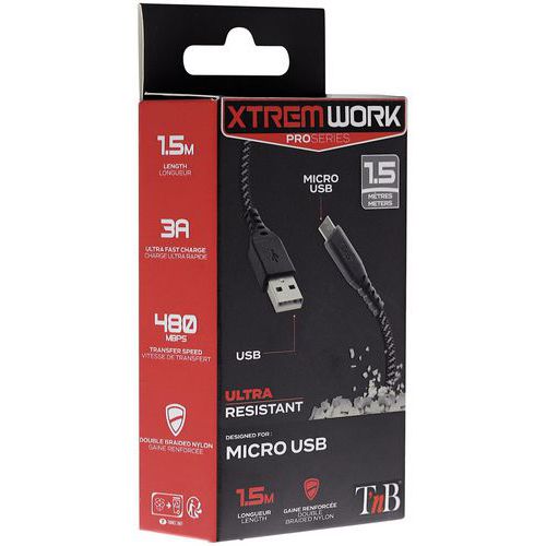 | Nome do artigo | Cabo USB/Micro USB XTREMWORK – T'nB, Cores: Preto/cinzento, Embalagem reciclável: Sim - 100%, Comp.: 1.50 m |