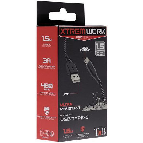 | Nome do artigo | Cabo USB/USB-C XTREMWORK – T'nB, Cores: Preto/cinzento, Embalagem reciclável: Sim - 100%, Comp.: 1.50 m |