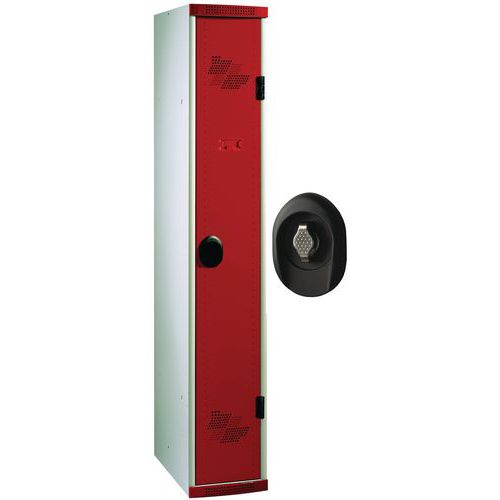 Tenha em conta que os modelos com ferrolho porta-cadeado são vendidos sem cadeado. Considere encomendar (asa de Ø 6 a 7 mm no mínimo/máximo). Conselhos de segurança: instale o móvel numa superfície plana, fixe-o à parede ou a uma divisória com a ajuda de uma fixação adequada.