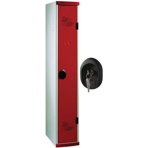 Tenha em conta que os modelos com ferrolho porta-cadeado são vendidos sem cadeado. Considere encomendar (asa de Ø 6 a 7 mm no mínimo/máximo). Conselhos de segurança: instale o móvel numa superfície plana, fixe-o à parede ou a uma divisória com a ajuda de uma fixação adequada.