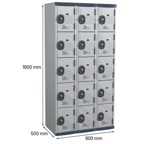 | Nome do artigo | Cacifo com 15 compartimentos Seamline Optimum® – 3 colunas de 300 mm de largura – Com base – Acial |