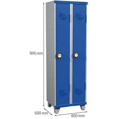 Armário cacifo com porta-etiquetas embutido.