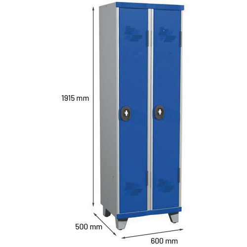 Cacifo em chapa de aço de primeira qualidade com boa rigidez e indeformável. Chapa de aço 6/1e perfilada (equivale à dobragem padrão de 8/1e). Colunas soldadas entre si para maior solidez. Excelente resistência mecânica com perfil fechado através de grampos. Porta impossível de retirar das dobradiças quer esteja aberta ou fechada, antiarrombamento. Articulação com dobradiças com abertura a 180°. Armário cacifo com porta-etiquetas embutido. Alie a resistência, a segurança e a estética nos seus espaços coletivos! Fabricado na UE Garantia do cliente : 3 anos Chapa esp. : 6/10