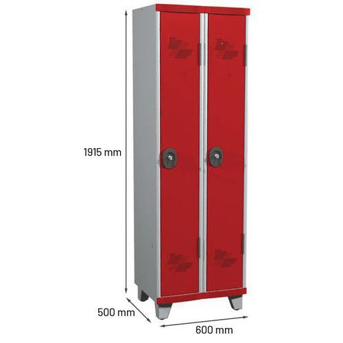 Armário cacifo com porta-etiquetas embutido.