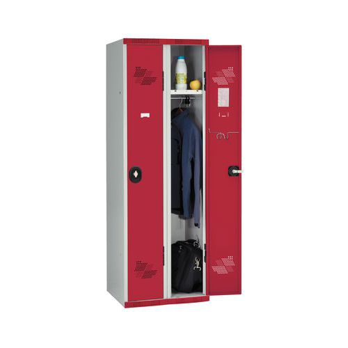 Armário cacifo com porta-etiquetas embutido.