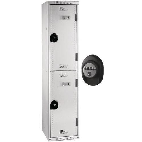 Cacifo com 2 compartimentos e cabides Seamline Optimum® – 1 coluna de 300 mm de largura – Com base – Acial