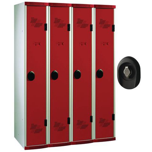 Composição: 1 prateleira galvanizada, 1 vareta e 2 cabides com ganchos, 1 espelho magnético inquebrável e 1 suporte para toalhas em arame dobrado. Vendido com 1 conjunto de 2 chaves por fechadura para os modelos com chave e 1 chave de descodificação para o modelo com código (1 chave de descodificação por cada 2 fechaduras enviada separadamente por correio registado).