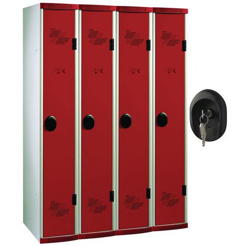 Armário cacifo com porta-etiquetas embutido.