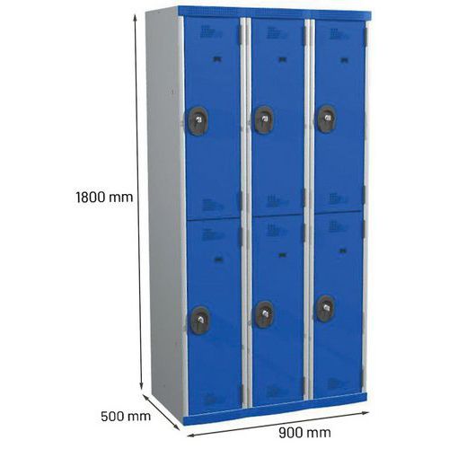 | Nome do artigo | Cacifo com 6 compartimentos e cabides Seamline Optimum® – 3 colunas de 300 mm de largura – Com base – Acial |