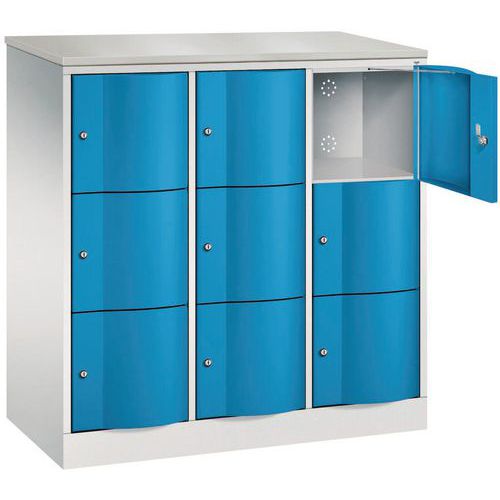 Cacifo com 9 e 15 compartimentos e porta antivandalismo – 3 colunas de 380 mm de largura – com base – CP Cacifo com 9 e 15 compartimentos e porta antivandalismo – 3 colunas de 380 mm de largura – com base – CP