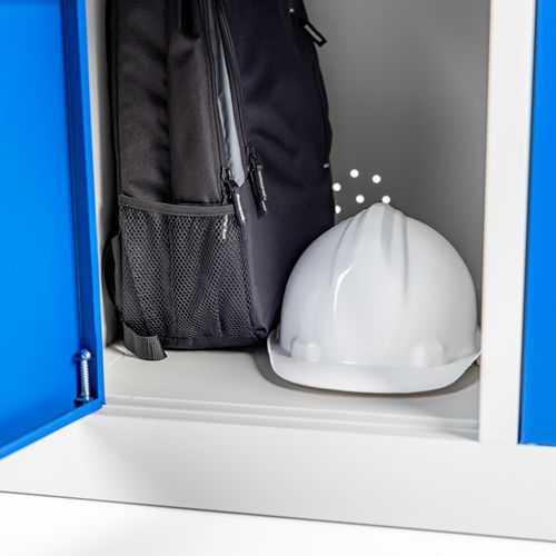 | Nome do artigo | Cacifo com porta em L em metal – 2 colunas e 4 compartimentos – com base, Tipo de vestiário: Porta em L |