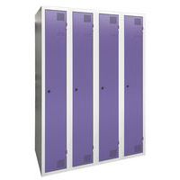 Cacifo com secagem com ar quente pulsado, de grande resistência, com compartimentos e cabides. Corpo e porta em chapa eletrozincada, com ómega de reforço a toda a altura. Utilização confortável com sistema de dobradiças que oferecem uma abertura a 180°. Higiénico, com dupla ventilação na frente, na parte superior e na parte inferior do cacifo. Acabamento elegante em tinta epóxi lacada, numa grande palete de cores atraentes. 2 fechos à escolha: fechadura com chave ou fecho porta-cadeado. Cacifo com porta-etiquetas. Produto fabricado em França.
