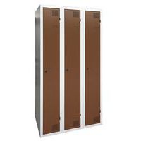 Cacifo com secagem com ar quente pulsado, de grande resistência, com compartimentos e cabides. Corpo e porta em chapa eletrozincada, com ómega de reforço a toda a altura. Utilização confortável com sistema de dobradiças que oferecem uma abertura a 180°. Higiénico, com dupla ventilação na frente, na parte superior e na parte inferior do cacifo. Acabamento elegante em tinta epóxi lacada, numa grande palete de cores atraentes. 2 fechos à escolha: fechadura com chave ou fecho porta-cadeado. Cacifo com porta-etiquetas. Produto fabricado em França.