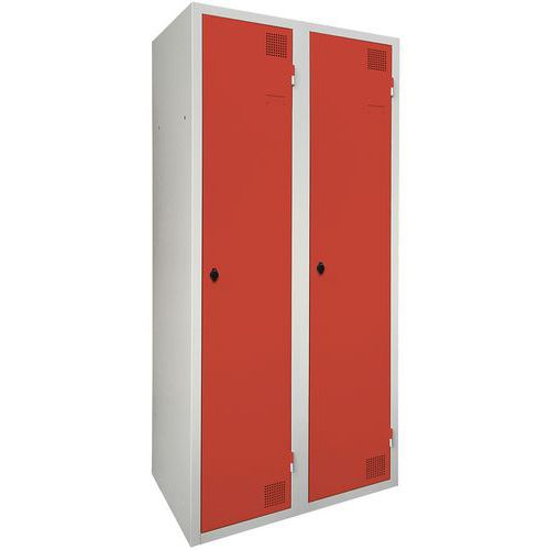 Cacifo com secagem com ar quente pulsado, muito robusto, com compartimentos e cabides duplos. Compartimento duplo com cabides: guarde o vestuário limpo/sujo em separado. Corpo e porta em chapa eletrozincada, com ómega de reforço a toda a altura. Utilização confortável com sistema de dobradiças que oferecem uma abertura a 180°. Higiénico, com dupla ventilação na frente, na parte superior e na parte inferior do cacifo. Acabamento elegante em tinta epóxi lacada, numa grande palete de cores atraentes. 2 fechos à escolha: fechadura com chave ou fecho porta-cadeado. Cacifo com porta-etiquetas. Produto fabricado em França.