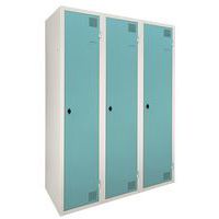 Cacifo com secagem com ar quente pulsado, muito robusto, com compartimentos e cabides duplos. Compartimento duplo com cabides: guarde o vestuário limpo/sujo em separado. Corpo e porta em chapa eletrozincada, com ómega de reforço a toda a altura. Utilização confortável com sistema de dobradiças que oferecem uma abertura a 180°. Higiénico, com dupla ventilação na frente, na parte superior e na parte inferior do cacifo. Acabamento elegante em tinta epóxi lacada, numa grande palete de cores atraentes. 2 fechos à escolha: fechadura com chave ou fecho porta-cadeado. Cacifo com porta-etiquetas. Produto fabricado em França.