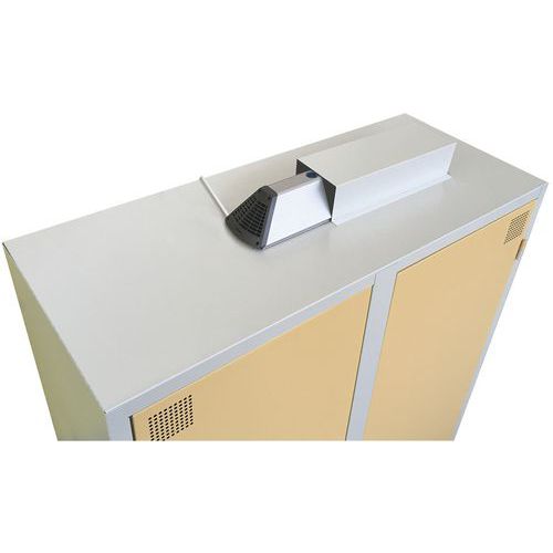Cacifo de desinfeção rápida, eficaz e económica com tecnologia de ozono. Prateleira com perfurações grandes para a livre circulação e a boa ventilação do ozono. Cacifo com resguardo de proteção, bem como indicador de funcionamento Air Care. Produto concebido e fabricado em França. Solução de ozono: desinfeção total de vestuário e ferramentas em tempo recorde!