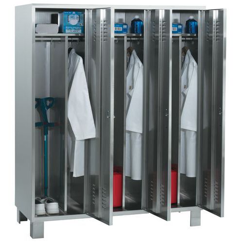 Cacifo em inox com 1 a 3 colunas, Tipo de vestiário: Com multi-compartimentos e guarda-roupa, Material: Inox