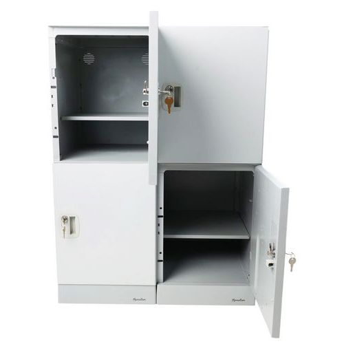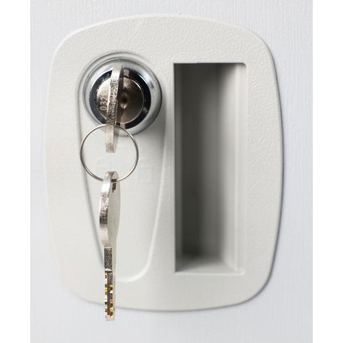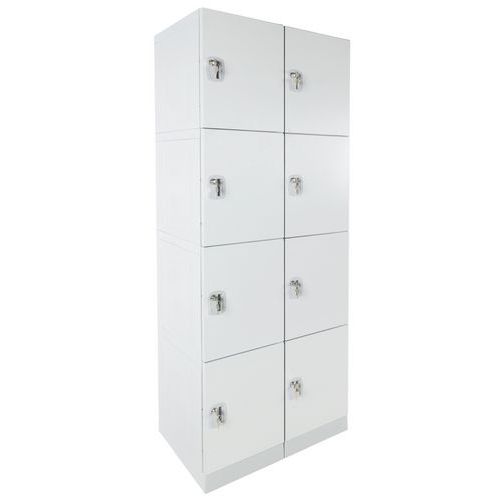 Cacifo em plástico multicompartimentos para montagem pelo utilizador. Fabrico ultrarrobusto em poliestireno antichoque (HIPS). Revestimento da porta: película decorativa de alta tecnologia. Fecho com chave integrado em sistema de fechadura mecânica. Utilização, de preferência, em espaços interiores. Dobradiças em poliamida. Carga máxima (interior/superfície): 50 kg. Garantia do cliente : 10 anos Montagem : Para montar