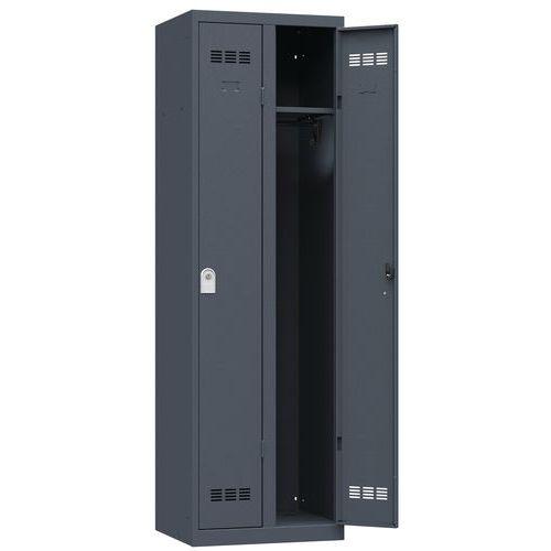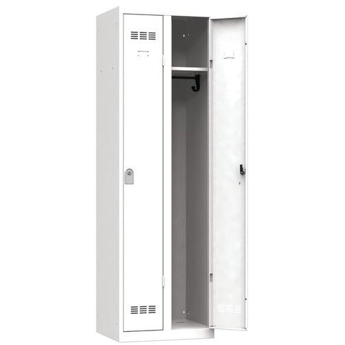 Cacifo de 2 colunas para escritório. Cacifo moderno que alia qualidade, segurança e design. Soldado em fábrica para garantir a máxima robustez. Dotado de elevada resistência ao arrombamento. Recomendações de segurança: - Instalar o móvel numa superfície plana - Fixá-lo numa parede ou divisória, com uma fixação adequada - Ter atenção para não ultrapassar a carga máxima recomendada, assim como a distribuição correta