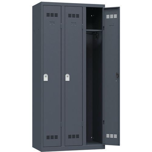 Cacifo de 3 colunas para escritório. Cacifo moderno que alia qualidade, segurança e design. Soldado em fábrica para garantir a máxima robustez. Dotado de elevada resistência ao arrombamento. Recomendações de segurança: - Instalar o móvel numa superfície plana - Fixá-lo numa parede ou divisória, com uma fixação adequada - Ter atenção para não ultrapassar a carga máxima recomendada, assim como a distribuição correta