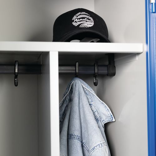 Cacifo com base para a indústria suja com portas reforçadas. Abertura ideal a 180° elegante com dobradiças invisíveis. Com cabides com separação para roupa limpa e suja. Perfurações para gancho de parede. Porta-etiquetas embutido. Cacifo higiénico com ventilação superior/inferior das portas.