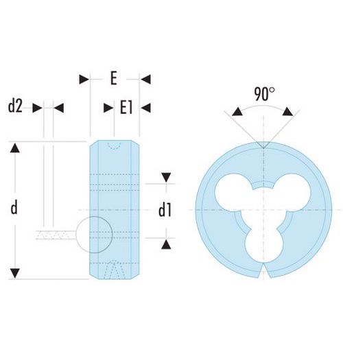 - Aço rápido HSS com crómio-vanádio tratado a 62/64 HRc (234 daN/mm²).