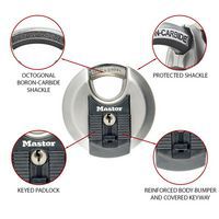Cadeado c/ chave inox Excell redondo M50EURDCC – Master Lock, N.º de chaves: 4, Argola Ø: 12 mm