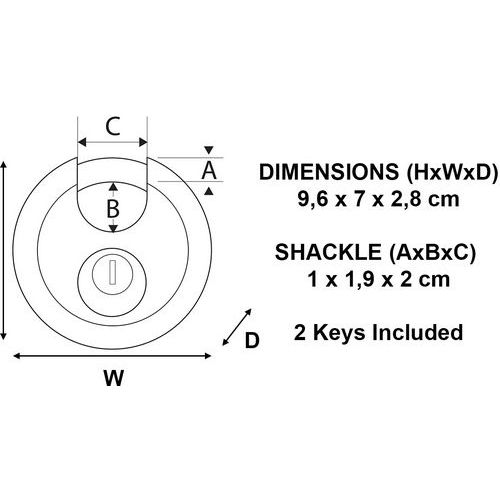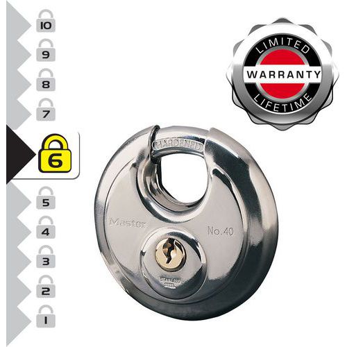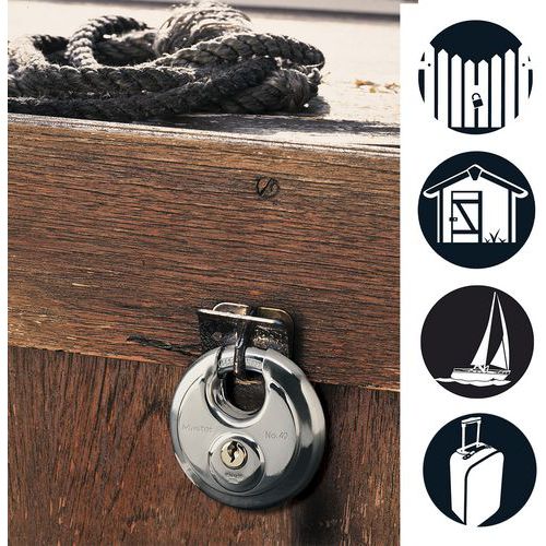 | Nome do artigo | Cadeado com chaves em aço inoxidável, Cores: Prata, Argola Ø: 9 mm, Altura: 1.6 cm, N.º de cavilhas: 4 |
