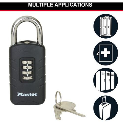 | Nome do artigo | Cadeado de combinação e chave de segurança, Argola Ø: 8 mm, N.º de rodas dentadas: 4, Largura Abertura: 48 mm |