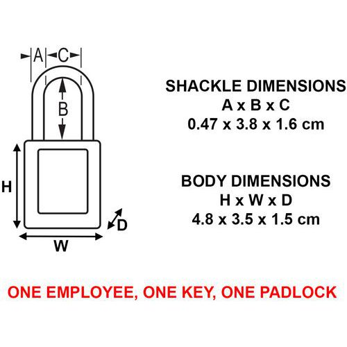 Cadeado de segurança em termoplástico e asa em inox 316 com 4,76 mm de diâmetro para instalações mecânicas. Adequado para locais e áreas classificados pela ATEX. Com retenção da chave. Asa fina para mais aplicações de segurança. Considere o serviço LIFEGUARD: serviço gratuito de registo dos números de chaves utilizadas por uma empresa para garantir que as chaves não são duplicadas nas suas equipas! Indicar esta opção quando efetuar a encomenda.