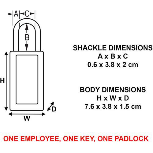 Cadeado de segurança corpo alto, Cores: Vermelho, Largura: 38 mm, Altura: 7.6 cm, Argola Ø: 6 mm
