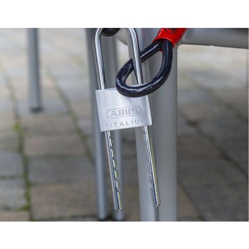 | Nome do artigo | Cadeado Titalium 64 – Asa ajustável – Abus, Comp.: 50 mm, N.º de chaves: 2, Argola Ø: 8 mm, Altura: 198 cm |