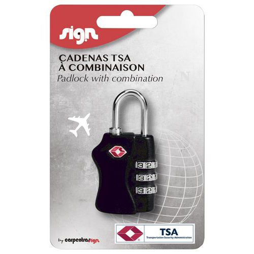 | Nome do artigo | Cadeado TSA com combinação – Sign, Argola Ø: 66 mm, N.º de rodas dentadas: 3 |