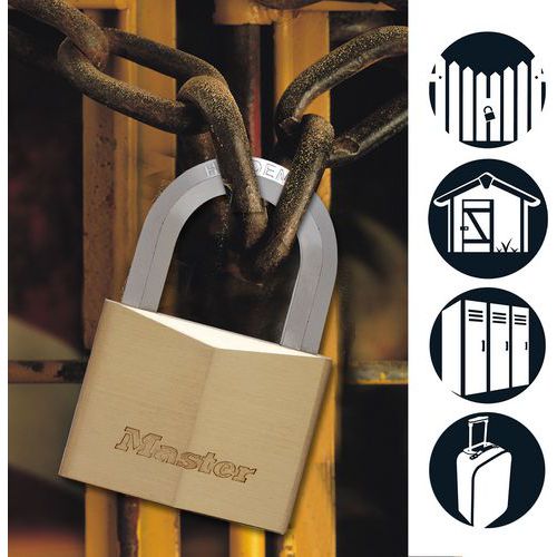 | Nome do artigo | Cadeados com chaves reversíveis n.º 1155, Cores: Dourado, Comp.: 30 mm, N.º de chaves: 4, Argola Ø: 9 mm |
