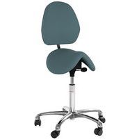 Cadeira tipo sela de cavalo, com rodízios de fácil deslocação, fabricado com espuma injectada a frio e revestido a tecido Cura.