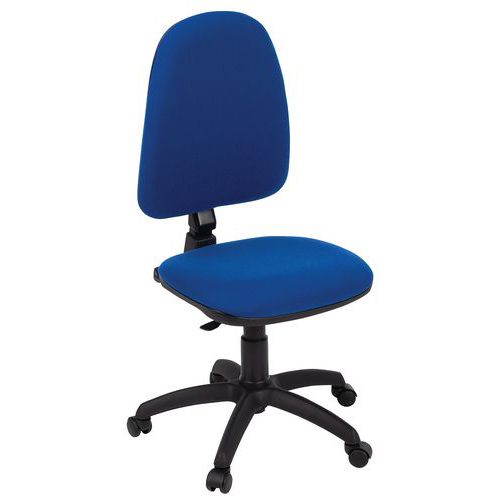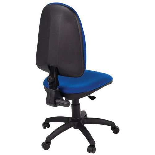 Cadeira com assento e espaldar reguláveis em altura através do pistão pneumático. Cadeira de escritório simples e leve. Conforme à norma antifogo: EN 1021-1 e 2. Tecido resistente: 60 000 rotações Martindale (EN ISO 12947). 2 mecanismos possíveis: contacto permanente ou síncrono.