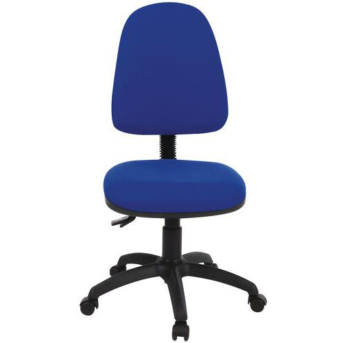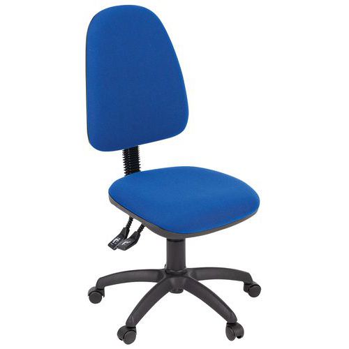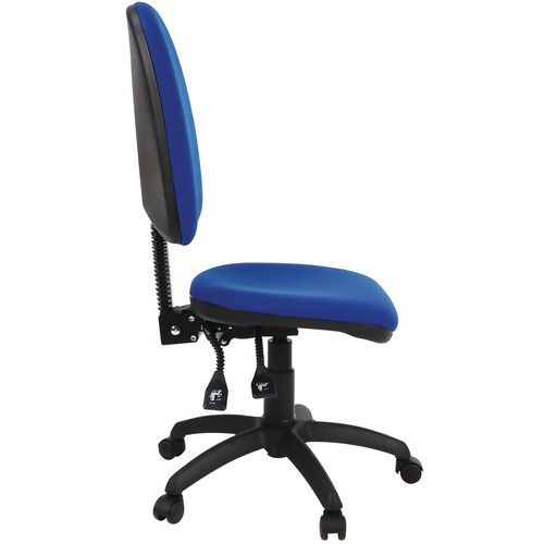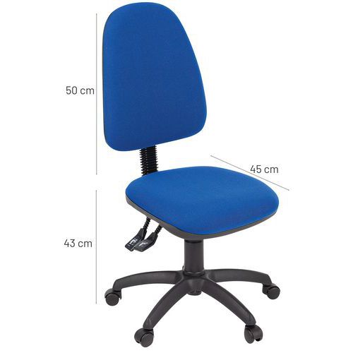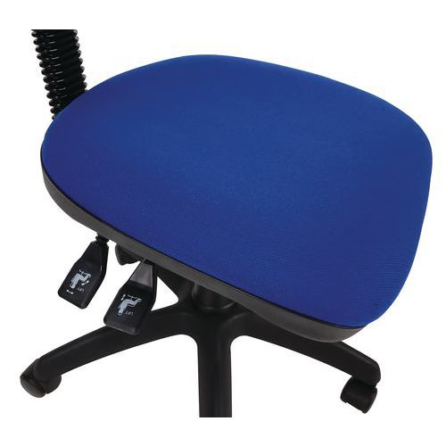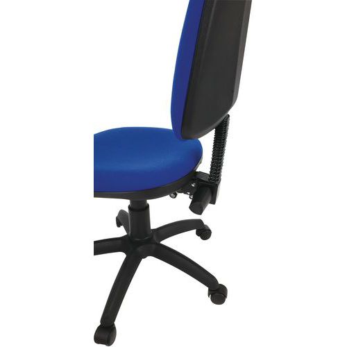 Assento regulável em altura através do pistão pneumático. Altura do espaldar regulável para uma posição de trabalho ideal. Cadeira de escritório simples e leve. Conforme à norma antifogo: EN 1021-1 e 2. Tecido resistente: 60 000 rotações Martindale (EN ISO 12947). 2 mecanismos possíveis: contacto permanente ou síncrono.