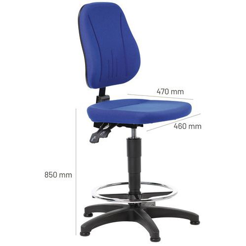 | Nome do artigo | Cadeira de oficina alta Bimos Unitec – Ergonómica, Tipo de pé: Calços, Assento material: Pano |