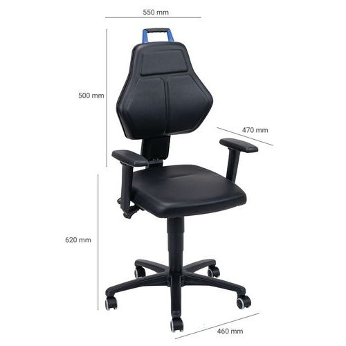 | Nome do artigo | Cadeira de oficina – Baixa com rodízios em imitação de couro, Assento material: Leatherette, Espaldar: sim |