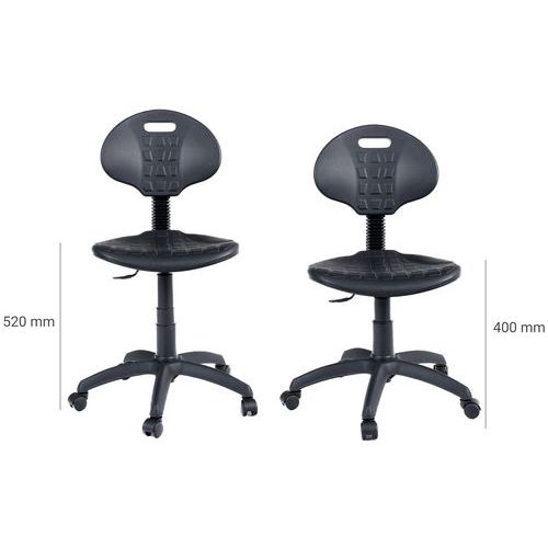| Nome do artigo | Cadeira de oficina ergonómica – Baixa, Com apoio para braços: não, Tipo de pé: Rodízios |