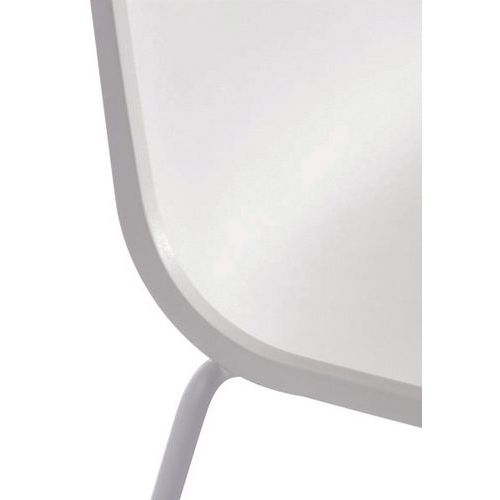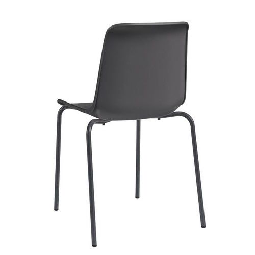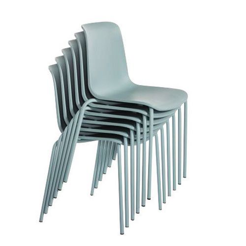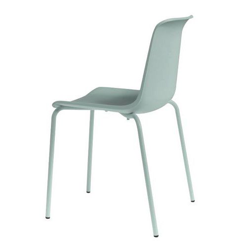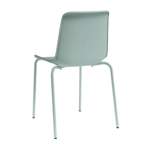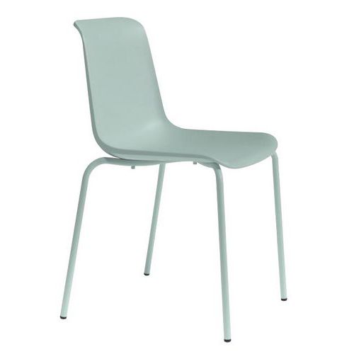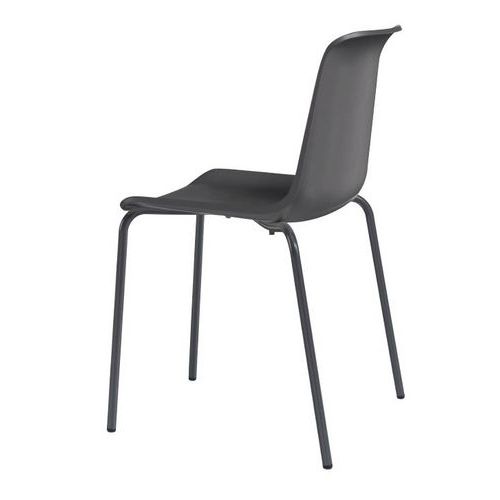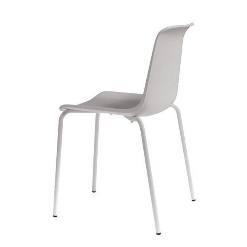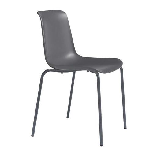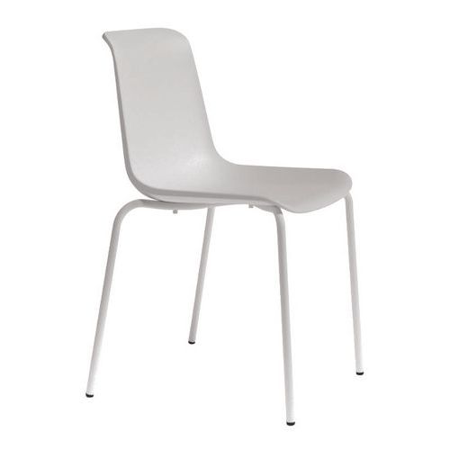 - Cadeira empilhável com 4 pés simples e retos.